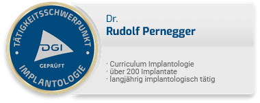 Das Behandlungsspektrum von Zahnarzt Dr. Rudolf Pernegger und Kollegen umfasst alle Leistungen der modernen und innovativen Zahnheilkunde, wobei wir besonders auf die individuelle Behandlung unserer Patienten großen Wert legen. Präzision, Qualität und Empathie – dazu stehen wir und behandeln unsere Patienten, wie wir selbst gerne behandelt werden möchten. Damit sind Sie bei uns von der Diagnostik über die Behandlung bis hin zur Nachsorge in guten Händen.